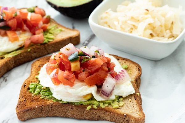 - Start by toasting the gluten-free bread and top with the sliced avocado. Mash and then top with the cooked egg.