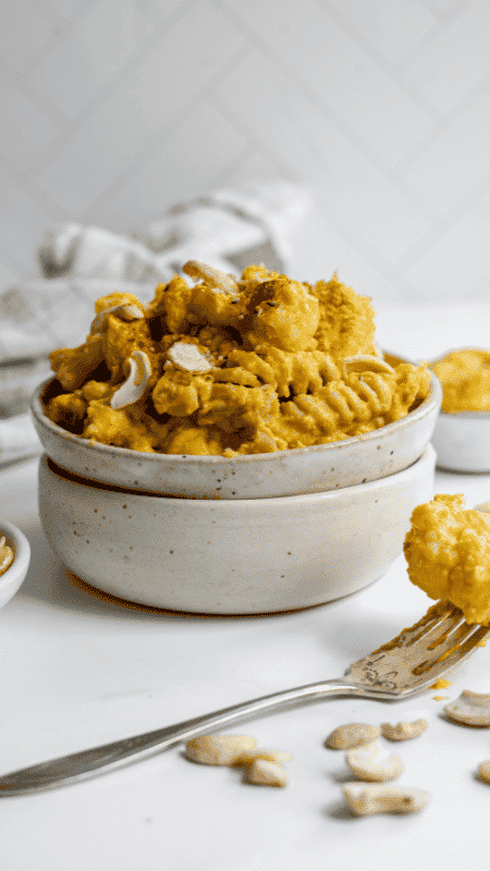 - In a blender, combine butternut squash, garlic cloves, coconut milk, nutritional yeast, mustard, paprika, cashews, apple cider vinegar, and water. Blend until smooth.