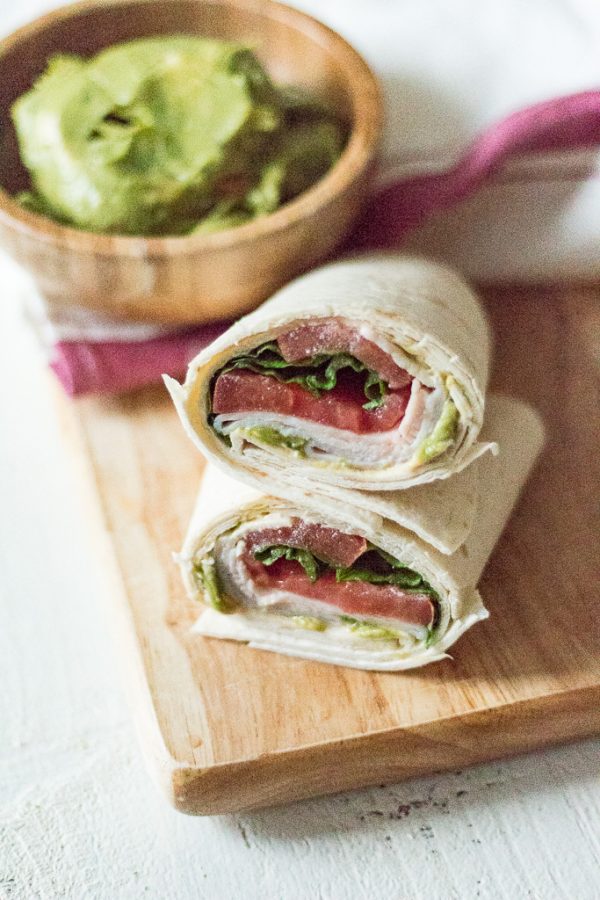 - Start by adding the mayo to the tortilla wrap, and then adding the turkey, tomato, guacamole, and lettuce.