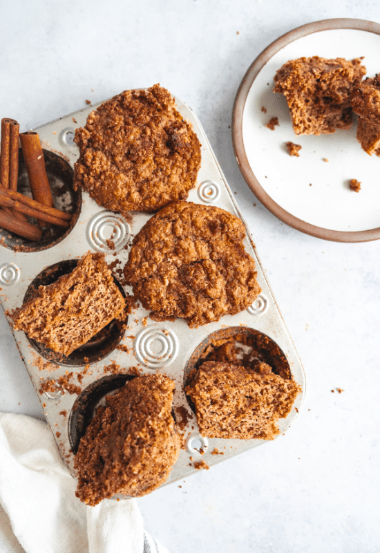 - Divide the batter into the muffin tin, filling halfway, and sprinkling the streusel into the batter before adding more batter. Top with the remaining streusel.