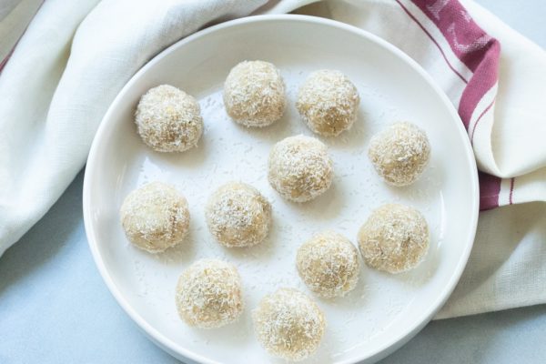 - Add the remaining ingredients, minus the shredded coconut you are reserving for rolling the bites in.