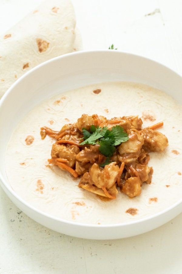 - Add the peanut sauce and shredded carrots and cook for an additional 3-5 minutes or until the sauce has thickened.