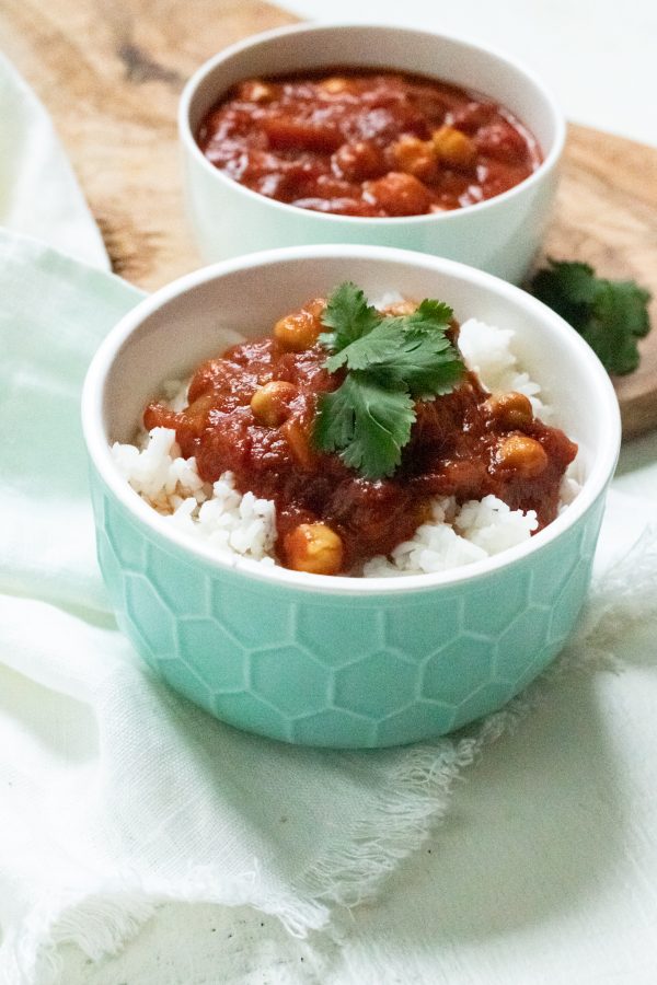 - Cooking Tip: You can also make this in a slow cooker. First saute the garlic and onion in a skillet. Then combine in the slow cooker with the chickpeas, tomatoes, water, seasonings, and spinach and cook on low heat for 2 hours.